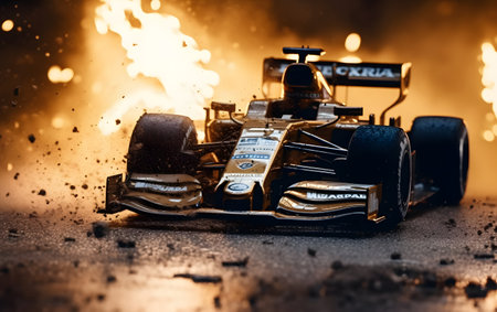 high speed f1 racecar major wreck capture by tilt-shift camera angle. Glorious Generative AI.