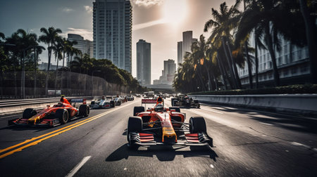 A formula one racing in circuit. beautiful Generative AI AIG32