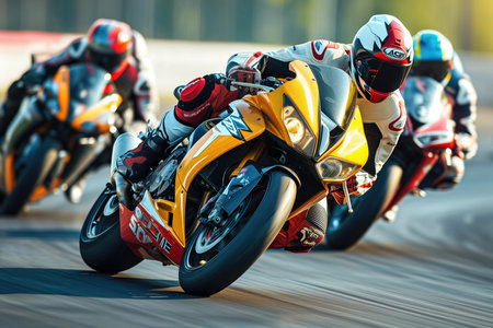 Dynamic motorcycle racing on the track with motion blur capturing speed and excitement