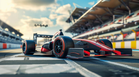 A sleek and powerful race car parked on the grid, ready to roar to life at the starting line of a thrilling competition.