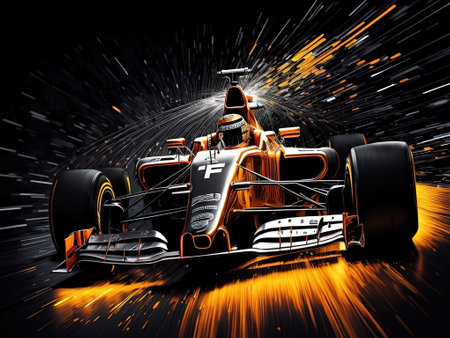 Formula 1 Race Car Speeding on Track with Sparks. Motorsport and Technology Concept.