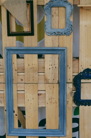 vintage frames on old wooden wall