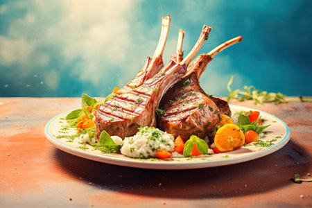 Fresh Succulent Lamb Chops and Vegetables Dish. Generative AI illustrator