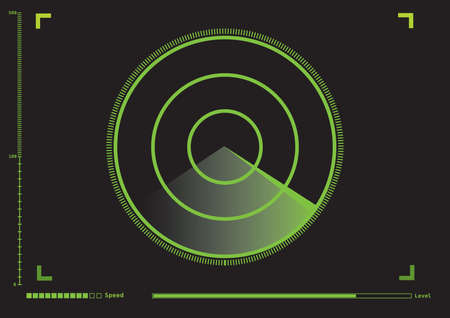 Vector green radar. HUD radar display. Military search system. Vector.