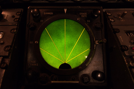 Closeup of green glowing aircraft radar gauge display