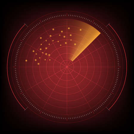Realistic vector radar in searching. Air search. Military search system blip illustration. Navigation interface wallpaper. vector