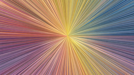 This image features a vibrant radial pattern comprised of multicolored lines radiating from a central point. The artwork displays a variety of hues, creating a dynamic and energetic visual effect. The composition uses geometric elements, suitable for various design projects and commercial applications. The style is modern, with potential uses in advertising or editorial contexts.