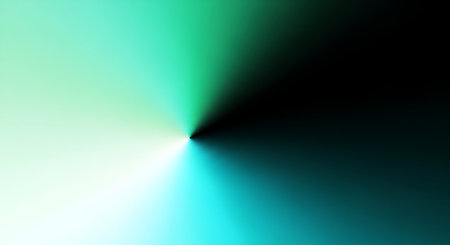 A radial gradient abstract background transitions from a bright white at the center, expanding outwards through shades of light green, teal, and deep blue, finally fading into black at the edges. The effect is a smooth, cone-like spread of color, creating a dynamic and visually appealing backdrop.