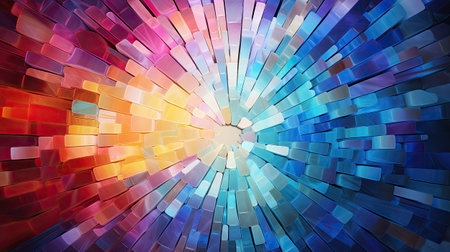 This vibrant abstract image features a circular arrangement of colorful shapes resembling stacks. A modern and creative design perfect for various artistic projects.