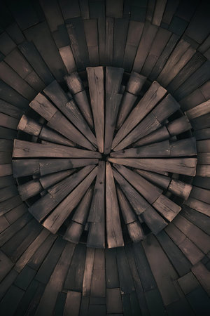 black carved wood with radial shape texture background