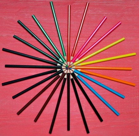 colored pencils on a pink background