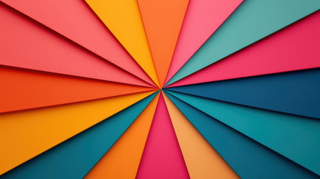 A vibrant display of colorful paper sheets radiating from central point creating captivating spectrum. Abstract design showcases rainbow gradient. Image represents creativity and artistic expression. AI Generative AI generated