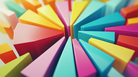 A striking arrangement of vibrant colorful shapes forming a circle, showcasing modern design principles and artistic creativity in a stylish composition.