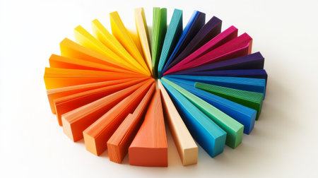 Vibrant and Colorful Circular Segments Creating a Dynamic Rainbow Palette on a Neutral Background