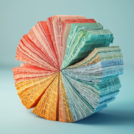 A stunning circular arrangement of colorful paper sheets, showcasing vibrant hues and intricate textures against a soft background, ideal for creative projects.