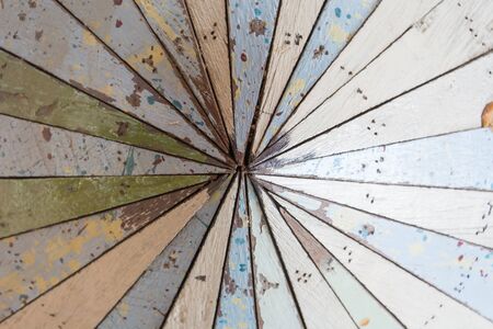 Rustic Color Wheel. Vibrant Spectrum of Painted Wooden Slats on Distressed Timber Background.