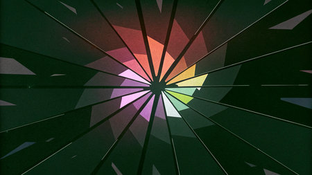 Vibrant geometric shapes in a kaleidoscope design dynamic symmetry bold colors soft diffused light overhead shot, Realistic Photo