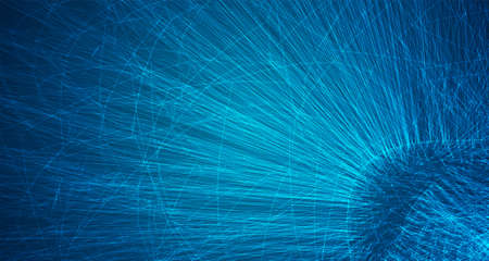 Abstract circular light speed background. Dynamic blue lines. Futuristic explosion of light. Colored rays in motion. Transfer of big data cyberspace. 3D rendering.