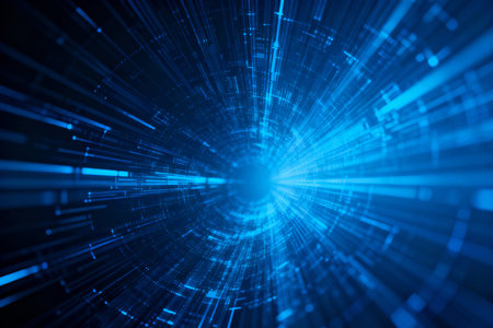 Dynamic Abstract Speed Lines Radiate in Blue and Orange Futuristic Digital Background