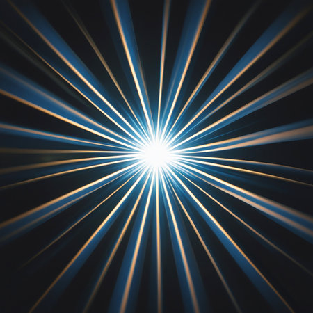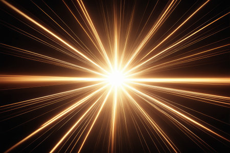 Experience bright explosion over black space. This radiant burst features light beams emanating outward, creating stunning cosmic effect against dark backdrop. Perfect for various designs