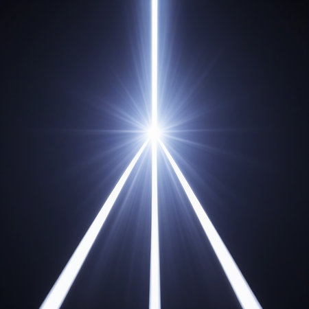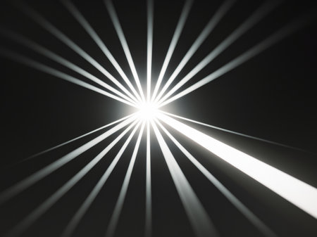 A powerful, bright white light beam radiates outwards from a central point, creating a starburst effect against a dark background.