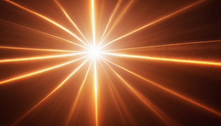 Bright light beams radiate outward from a central point, producing an abstract and energetic visual effect in warm colors against a dark background.