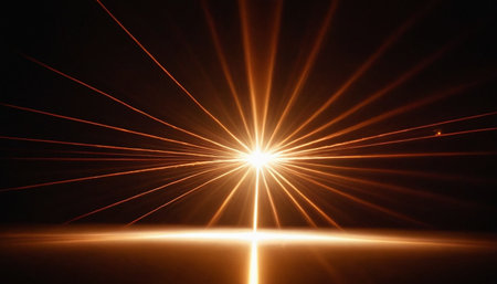 Radiant light beam glowing on a pitch-black backdrop, close-up view