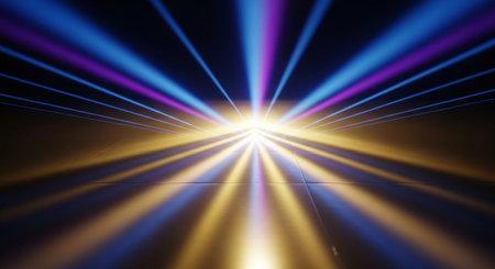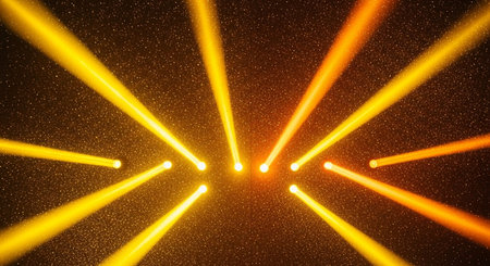Dazzling Golden Spotlight Beams Illuminating Darkness with Ethereal Light Rays for Dramatic Effect