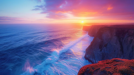 AI Generated. Stunning Coastal Sunset with Cliffs and Ocean View