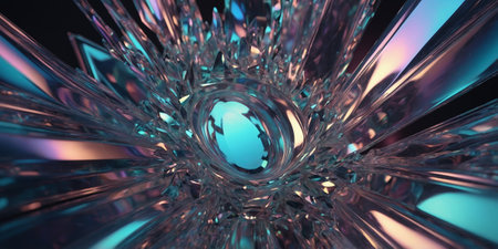 AI Generated. Abstract iridescent crystal light rays reflection background