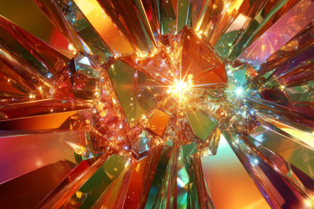 Brilliant abstract crystal formation. Sharp geometric shapes vibrant rainbow colors. Stunning digital art visualization element.