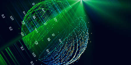 Big data transmission cloud computing, digital information database. High speed mathematical calculations. Future technology, cyber security concept background. 3d rendering