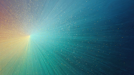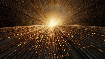 Stunning visual of radiant light beams emanating from central point, creating sense of depth and movement. golden particles enhance dynamic feel, evoking sense of wonder and energy