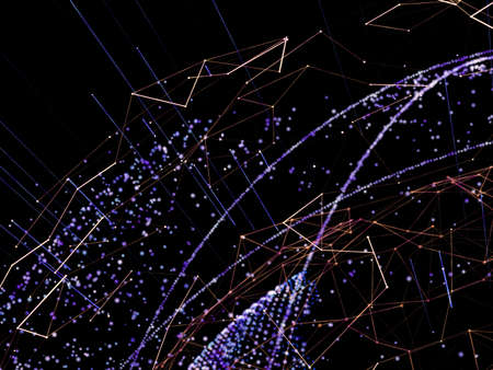 Glowing particles and lines with dark background,3d rendering. Computer digital drawing.