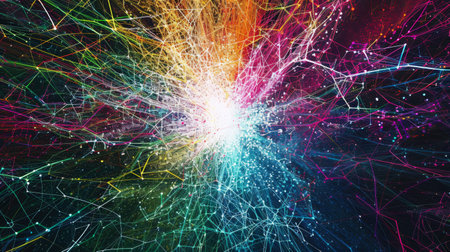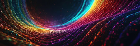 Captivating digital abstract background featuring a mesmerizing display of vibrant glowing particles and trails creating a futuristic and ethereal atmosphere The dynamic