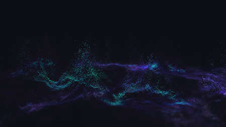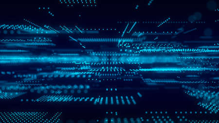 Digital background with moving glowing particles. Futuristic hi-tech illustration. Concept of data transfer in cyberspace. Big data visualization. 3d rendering.