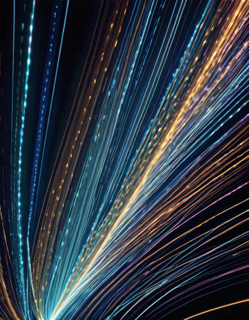 Abstract light streaks and particles creating a sense of motion in a dark space. Clear details and vibrant col...