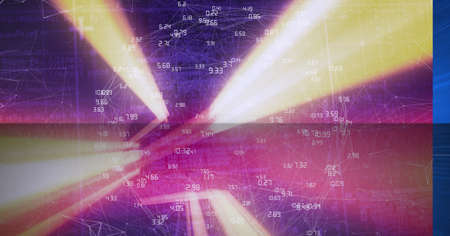Composition of network of connections with numbers and glowing light trails over globe. global networking and connections concept digitally generated image.