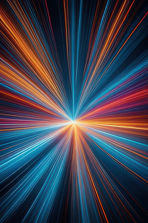 A vibrant display of colorful light streaks radiating from a central point