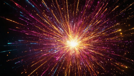 A stunning visual of a colorful explosion showcasing vibrant light particles against a dark background, perfect for abstract design or dynamic themes.