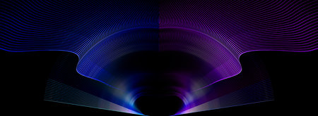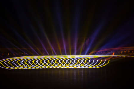 Abstract light trails on the black background. Long exposure photo taken in a tunnel.