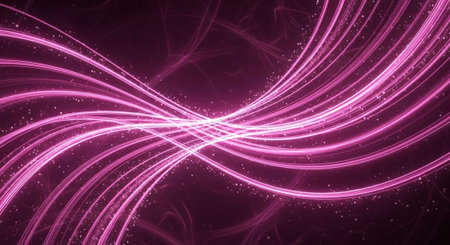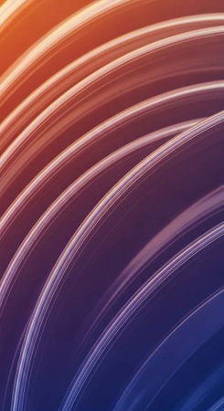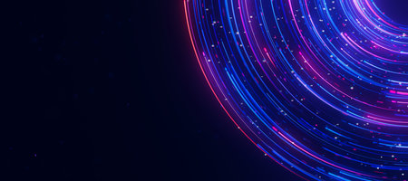 Swirling neon arcs in violet and tangerine weave through darkness, evoking a high-tech, energetic vibe perfect for sci-fi themes or modern digital design.