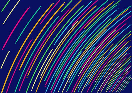Blue illustration with lines. Turquoise, cobalt, navy speed line or wind motion abstract background. Glowing shiny energy waves on dark blue backdrop, digital halftone pattern