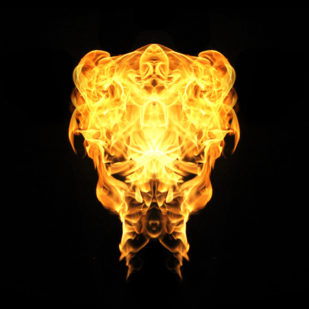 The fiery face created by the tongues of fire resembles the tales of legends and beliefs in the underworld and devils, red crimson orange colors and black smoke soot
