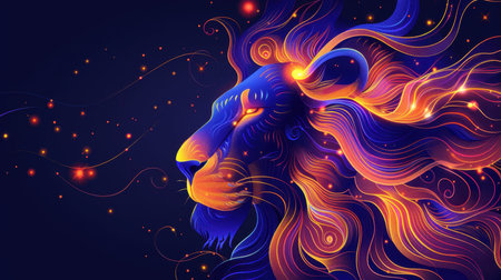 Majestic lion silhouette with fiery mane