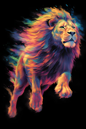 Lion with colorful background. Psychedelic design.