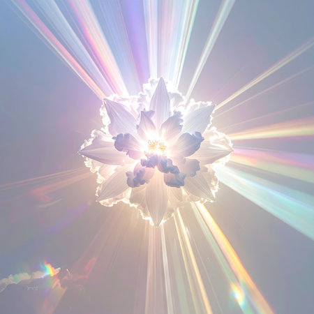 A high-quality abstract image featuring a complex geometric shape emitting bright, colorful light beams radiating outwards in a dynamic and ethereal manner. High quality photo