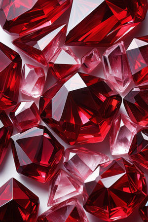 This close-up image showcases mesmerizing red gems with vibrant colors and intricate textures. The stunning sparkle and reflections create a luxurious and artistic atmosphere.