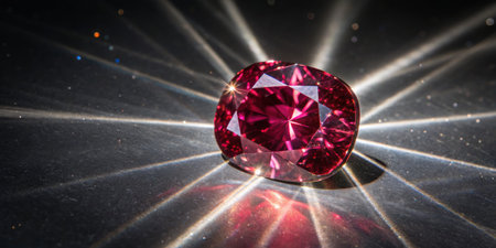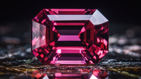 AI Generated. Charming ruby glows vividly on a textured surface during soft daylight