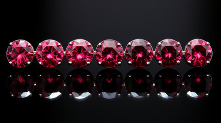 Close-up of vibrant red rubies with faceted cuts, showing their brilliance and rich color. Generative AI